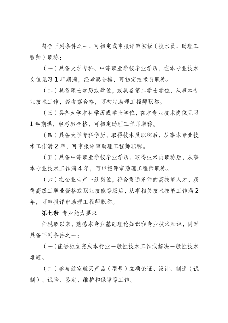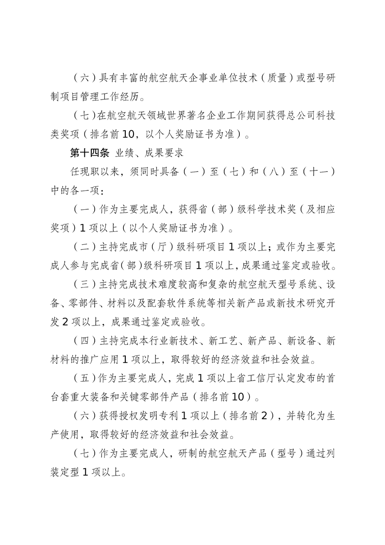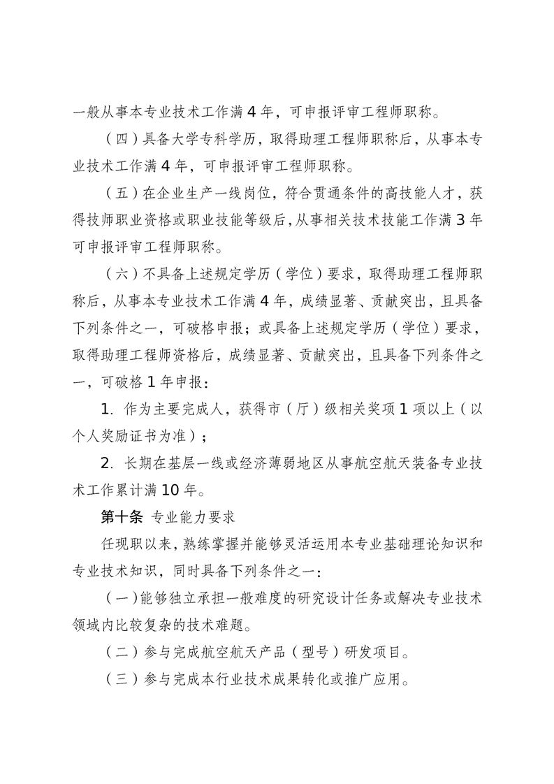 江苏省航空航天装备工程专业技术资格条件(试行)